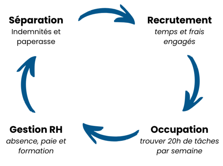 De plus, il s'agit d'un coût fixe : vous payez pour ces 86,67 heures, que l'administratif soit dense ou léger. Sur l'année, c'est un engagement financier minimum de près de 17 300 € qui s'ajoute au risque de devoir payer des indemnités en cas de rupture de contrat.