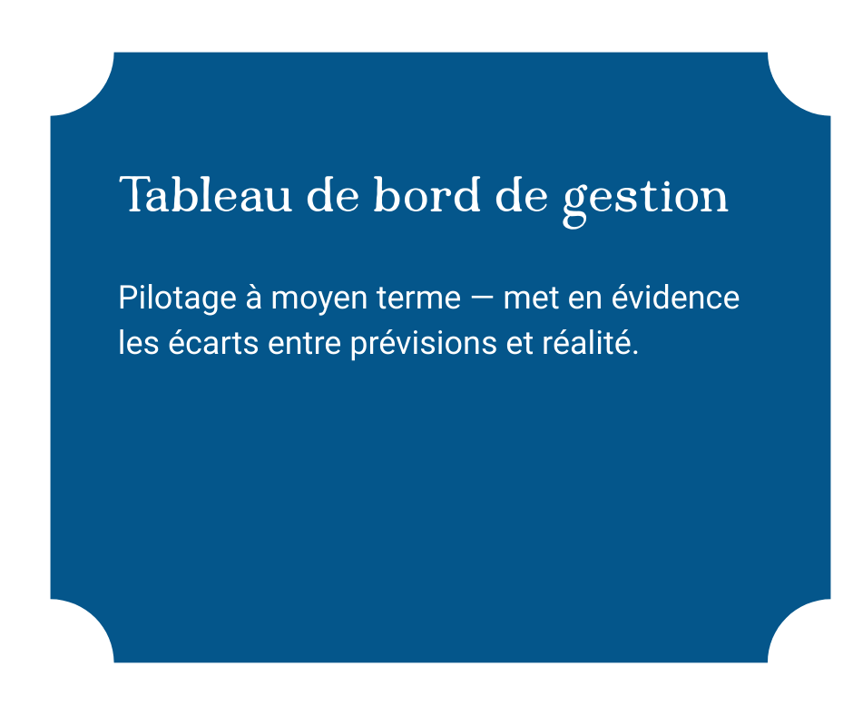 Un tableau de bord de gestion ou budgétaire a pour objectif de mettre en évidence les écarts entre les prévisions et la réalité.